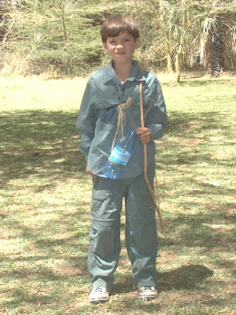 Today we went on a safari. We saw monkeys, a hippopotamus, giraffes, warthogs, water bucks, and bush bucks. The safari was great except for the bumpy road. There aren't many paved roads, and it's very bumpy. It was also very dusty. And on the safari we got to stick our heads up out of the roof. It was fun because Cam and I got to sit up at the top. The safari is in Arusha National Park.