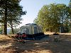 We began to put up temporary, portable structures to stay longer. We had a tent for sleeping and an enclosure for an outhouse. We had portable cooking equipment. We were nomadic, moving around to various sites on the property and constantly changing our minds about which location we liked best.