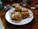 Stop No. 1 was Mahony’s Po-Boy Shop. The “Po Boy,” New Orleans’ signature sandwich, was invented in 1929 when striking streetcar workers were referred to as “poor boys.” Our New Orlean’s Secret Po-Boys included roast beef, onion rings, dressing and debris. Gail also had “The Mahony,” a bright blue cocktail featuring Blue Curacao.