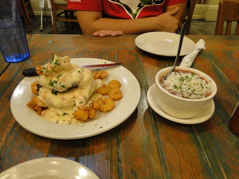 Stop No. 4 was Joey K’s, a local favorite. Our selection here was Eggplant Napoleon, with a sauce made from chicken, crème and crawfish tails. The side dish was red beans & rice. This was Russell’s favorite of the tour.