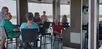 When not touring around the small towns, Russell could be found either in the Ladies’ Parlor, the Men’s Card Room or the Mark Twain Gallery, writing away on the blog. Folks assumed he was working and teased him a bit. But once it was discovered that we were writing a blog, folks wanted our info so they could read it. We even had some come up to us later to say they had started reading it on the boat. One couple forgot their camera, so we gave them our card and told them to contact us for photos.