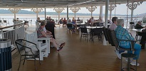 People have asked how this compares to a large-ship ocean cruise. There are so many ways. The scenery changes every moment you are moving. There are no crowds, no long waits in line, no pushing past people to get somewhere. People were content to sit inside, reading curled on a sofa with their feet up, or playing bridge, or just doing a jigsaw puzzle together with total strangers. Just hanging out on the front porch was perfect, sitting on the swing bench or enjoying a meal or snack.
