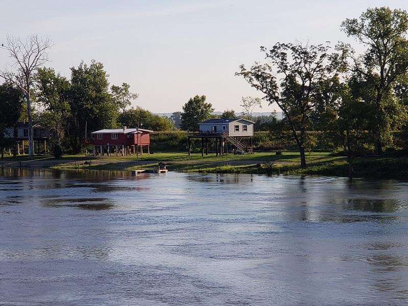 The Upper River (we got as far as Hannibal, so not too far up) is more pristine. You start to see homes along the shoreline, people boating or fishing. The fish jump straight up out of the water (Asian carp). The land rises up to bluffs overlooking the river. There is more wildlife. You see far fewer barges and those you do see are smaller. There are more bridges. The towns we stopped in were still small but were less depressed, less run down.
