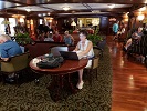 The free specialty coffee machine and soft-serve ice cream with toppings were favorites. The pace is slow and easy. Wine came with dinner. Free soft drinks, ice cream, popcorn, hot dogs, lemonade, cookies and fresh fruit were available all day. The entire crew would take time to chat. The standard excursions on the hop-on hop-off bus were free. There were free bikes to check out, helmets included. Laundry was included. All the standard excursions were included, and the premium excursions were not outrageously priced.