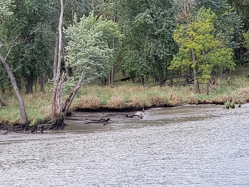 We made it onto four rivers: the Mississippi, the Yazoo, the Ohio and the Illinois. The first three were part of the schedule. The Illinois was not. We were rerouted due to high water, and truly we were so lucky. The Illinois is a beautiful river. It is narrower than the part of the Upper Mississippi we traveled on, with an abundance of pelicans, gulls, terns, herons and eagles. Trees crowd the banks, creating snags where the fish hang out until the boat wake hits and they all start leaping out of the water. The water is swift.