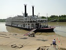This was the first time the American Queen had been up the Illinois River, so she caused a stir. People came out on their back decks or back yards to watch the biggest steamboat in the world pass by The Queen is 416 feet long with six decks and carries about 460 passengers. Contrast that with the other two boats from this line that have been up this river – the Empress is 380 ft. with four decks and 223 passengers; the Duchess three decks and 166 passengers. With her size and her steam whistle and the calliope playing, the Queen really stands out.