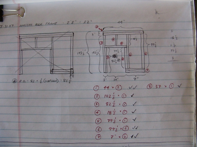 Russell was in charge of schematics and measurements. Every wall and every door frame would have to be constructed differently due to the size of both the door and the wall. Russell approached his tasks with his usual meticulousness and ever-present pad of paper.
