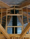 The rough-in with the window frame removed. (Note the additional “girdles” under the ceiling beams for future drywalling.)