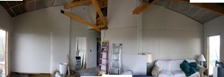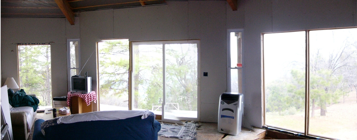 Gail came up to take advantage of the unusually rainy weather. She continued to work on repairing leaks in Joss’ and the master bedroom exterior walls. At the same time, she continued to install drywall, alternating between Joss’ bedroom, the master bedroom and the upstairs living room.