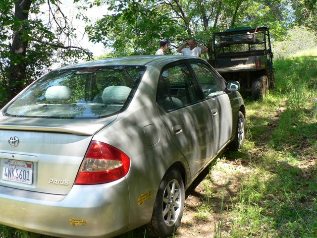 The next morning saw our neighbor Scott drive over with a 4x4 Polaris ATV and a tow strap. He had delayed driving to a wedding at Lake Tahoe to come and help us instead. Within a half hour, the Prius was parked in front of our mountain house. Today was Russell’s birthday.
