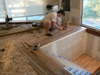 Gail begins installing the second-story hardwood floor that will join the upper stair landing