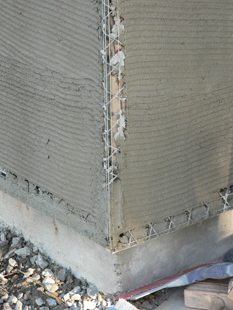 The stucco work crew showed up as usual on Thursday morning a little after 7:30 am. They would work for two days on the first actual coat of stucco, the “scratch coat.”