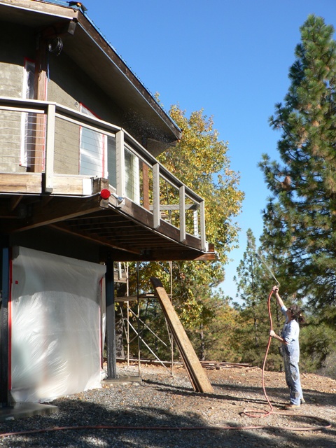 Compared with the noisy din from the previous week, our environment was quiet and peaceful. Russell did his day job. Gail made further progress on drywalling the interior walls. She also volunteered for the thankless task of watering down the scratch coat several times after the crew had departed. Apparently, the stucco needs to be watered constantly in order to cure properly. Gail managed to get herself soaking wet and freezing cold every time; fortunately we have a nice hot bath tub.