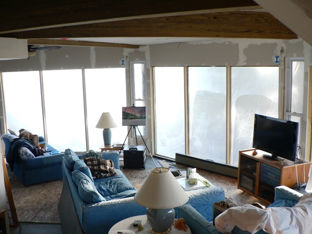 On the inside, we’re back to having our house wrapped in plastic again!