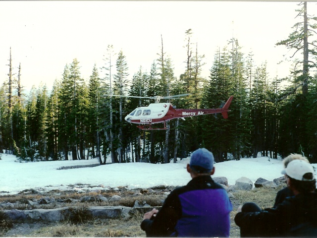 June 2000: Russell is emergency airlifted from Mt. Shasta (another mountain climber took photos and was kind enough to send copies)
