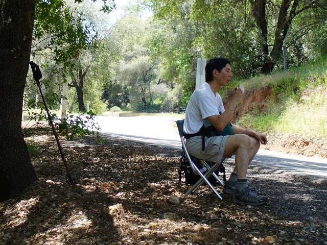 Russell took his lunch – as planned – on a folding chair on the side of the road