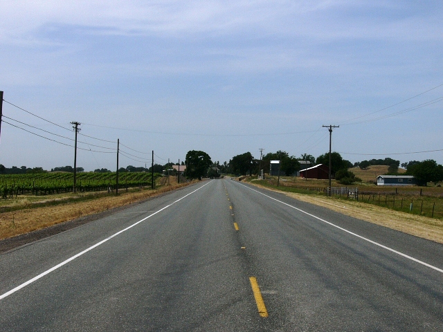 Today's terrain: the live oak orchards of Calaveras gave way to the vineyards and farms of San Joaquin
