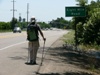 As it was, I said goodbye to Gail one more time and set off down the road at 9:30. As a result of yesterday’s mishap, I have made a couple of changes. I offloaded additional gear to Gail, including my jacket (unused so far) and folding chair (increasingly cumbersome). I am now wearing my fanny pack on my fanny. In addition to reducing possible stress on my bladder and groin, it also acts as a hip belt for my daypack. My first stop this morning was to purchase a gallon jug of cranberry juice to help me stay hydrated. Finally, I am now wearing long pants due to the rather severe sunburn I picked up yesterday.