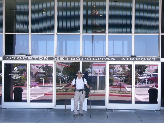 I arrived at my halfway point at 11:30: the Stockton Metropolitan Airport. This gave me an opportunity to wash up, sit down in a real chair and rehydrate myself. I didn’t need any food because I was still full from breakfast (I never did have lunch today).