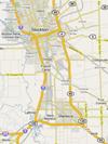 My accommodations last night – the Clarion Hotel – were at this intersection. I had always regarded it as part of Waterloo. Officially it is in Stockton, but it is not really in the city. Instead, it looks more like a large truck stop, with fast-food restaurants and motel chains. I had dinner last night at Perko’s so I could have breakfast this morning at Denny’s.