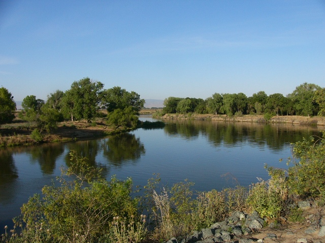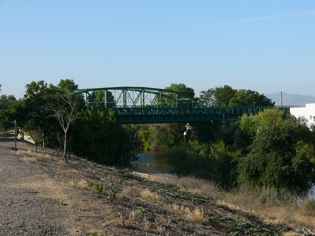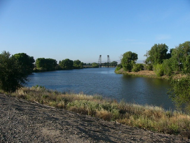 The San Joaquin River on a day with perfect weather. Our destination was the railroad bridge in the distance, where there was also a pedestrian bridge across the river.