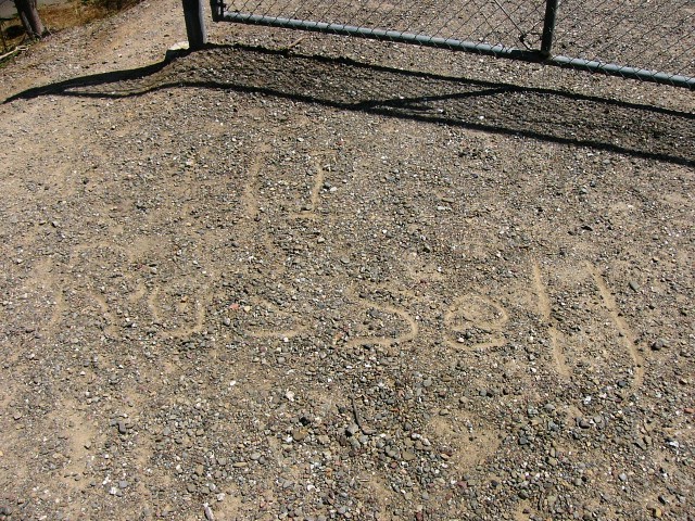 Unbeknownst to me, Gail had also gone along my route for today and left several “happy messages” for me to find. On the levee path at Mossdale Crossing Park, she had scrawled “Hi Russell” in the dirt. And along the bike path near Highway 5, she had left a sign for me. (I know she underwent a considerable amount of effort, as neither of those locations is accessible by car.)