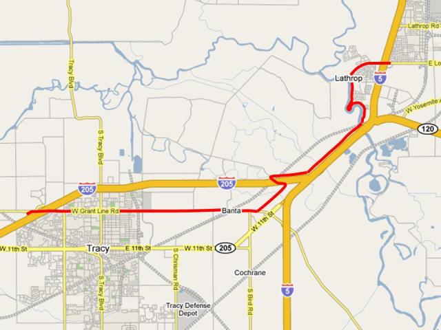 Grant Line Road (Highway 205 crosses in the background, indicating our final destination)