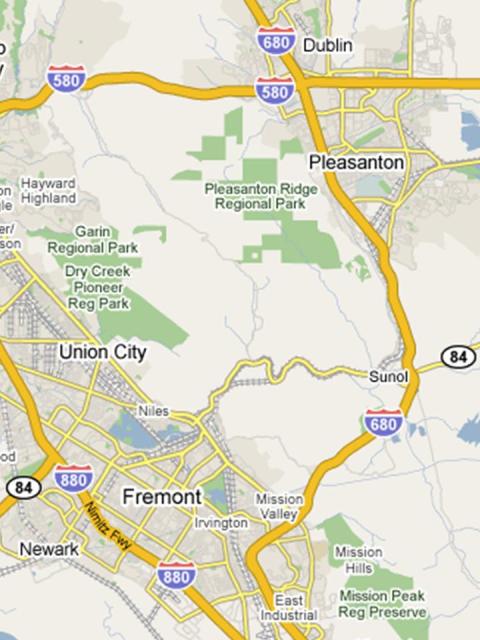 Heading west out of Fremont, you can see the foothills of Pleasanton and Sunol Ridge