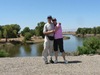Today Russell took us on another amazing ride. He was really excited to share this part of the trip with me – it was one of his favorites when he walked five years ago. I can see why. We rode through a very nice neighborhood to an access point for the levee on the San Joaquin River. It was our first attempt at a gravel surface and we did great. The view really was picture perfect, so we took pictures! I was amazed at one point that we could see the windmills at the pass. I realized that in one more day we would be biking there.