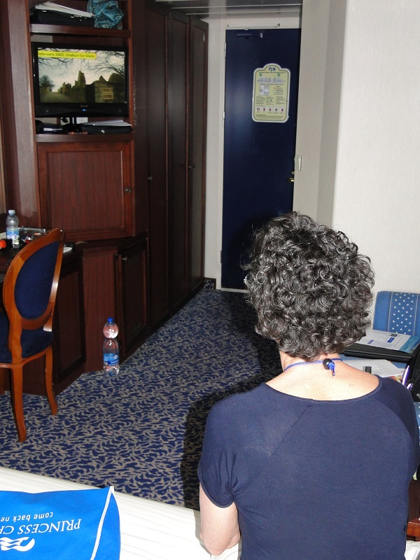 Gail watches a replay of our second lecture (slides and audio only) on the cruise channel