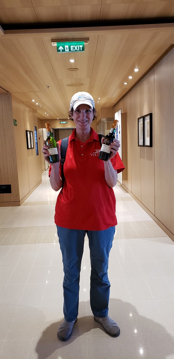 Gail got to experience Porto’s third claim to fame: port wine. She escorted the four hour “Porto Walking Tour & Port Tasting” excursion, which visited a local Port winery. This was one of her first choices, and she was thrilled to get it. Gail got to wear a red Viking shirt and count heads on and off the bus. She also ended up purchasing two bottles of Port wine (a steal at $6 each).