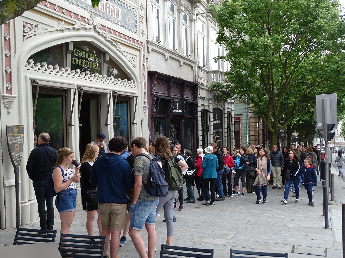 Russell’s “Porto Orientation” tour was a four-hour bus ride with a few walking stops. The hilly town is reminiscent of San Francisco, but its buildings are covered with colorful tiles and filigreed balconies. Porto is famous for three things, and Russell saw two of them. First was the Dom Luís bridge, the last thing designed by Gustave Eiffel before he went off to Paris and constructed the Eiffel Tower. Russell also saw the Livraria Lello Bookstore, where J. K. Rowling wrote the first draft of “Harry Potter” when she was in Porto as an English teacher. People were lined up down the block for a chance to see this bookstore.