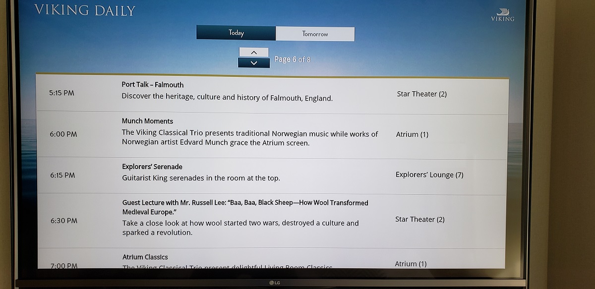 One of the many couples that came up afterward said they have been on four Viking cruises and this was the best lecture they had ever seen. As we walked to dinner, people stopped us to say how much they enjoyed it. While we ate, people came over. Even the maître d’ said he heard people talking about it at dinner. Did I say how proud I am of Russell?