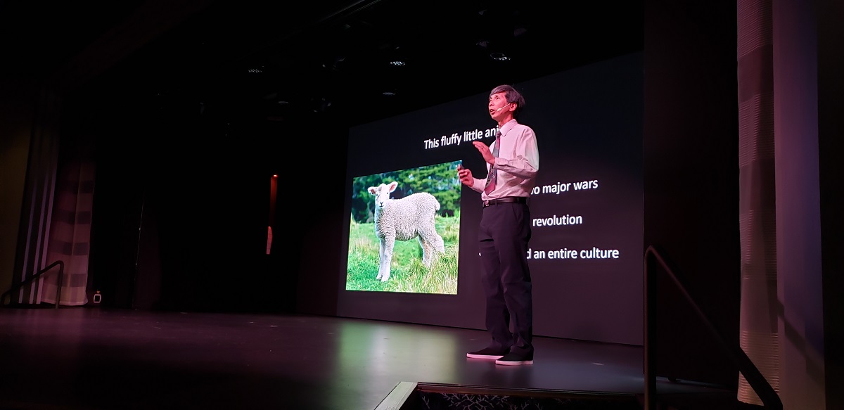 Russell has more of a storytelling style and not a recitation of facts. He is easy to understand, his story flows and he is funny. His slides were amazing and everyone was completely engaged, laughing and answering his quips and questions. I nearly missed my cue because I was taking photos.