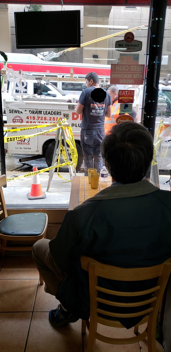 We had nachos at a hole-in-the-wall taqueria next to the Stockton tunnel. We snagged the only window seat, which had a lovely view of the septic truck parked outside. After lunch, Gail took a nap while Russell took a 1.5-hour walk around Chinatown and Union Square.