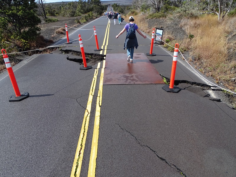 Our next stop was Kilauea Crater at Volcanoes National Park. As we got closer it became clear that the fleece was going to come in handy under the Regent jacket. It was windy and cold. We were in for a 3.5-mile round-trip walk to the crater, so everyone hit the rest room and then we were off to the hike. Now, “hike” is a loose term. This was completely on a paved road or walkway, but it was long. At one point is was like something from Lord of the Rings, a landscape cleared by fire. It reminded me of the fire at Highland House in 2015.
