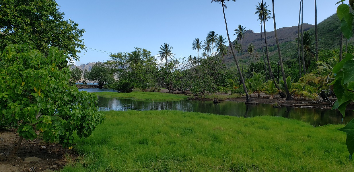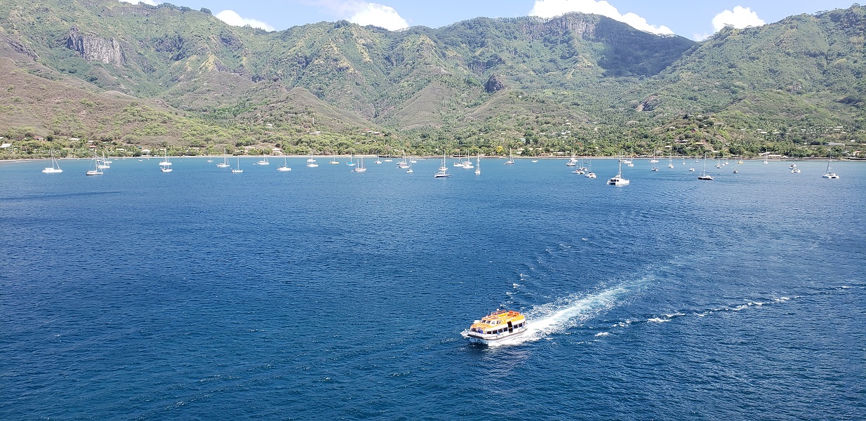 The greeting we got was exactly what I had been missing from Hawaii (where there was no greeting at any port). Here, women were singing a welcome alternately between each other. A man welcomed us with a jasmine flower. Other young men were drumming, while one blew a greeting on a conch shell. Our basic research had told us that most islanders do not speak English, but they do speak French. Well, hey, Russell speaks French! I was really taken with the drummers and went over to talk to them. But at this, point Russell had gone off to take photos of the harbor. After establishing that indeed they only spoke French, I told them in my broken French that I would get my husband to help our communication. Okay, it was more like “My husband is over there; I will be right back.”