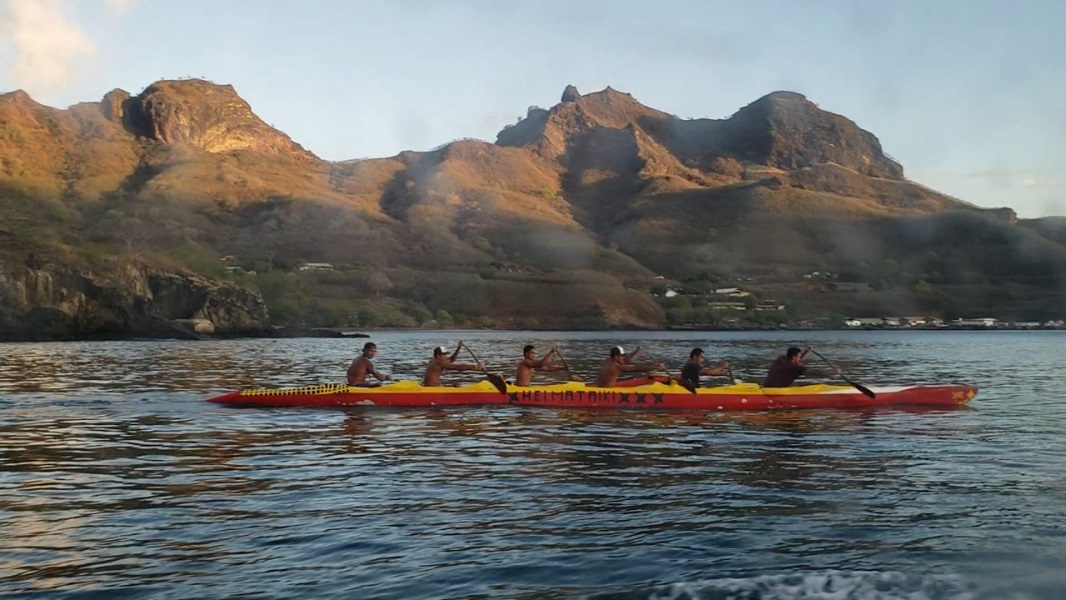 As our tender was returning to the ship, I noticed a fully manned outrigger waiting at the mouth of the harbor. As we drew even, they started to pace us and followed very near beside or behind almost all the way to the ship. Just before we got to the ship, they broke off waving goodbye.