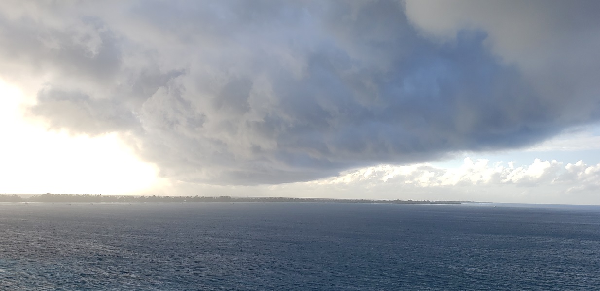 Today’s port was Fakarava, where we arrived after a day at sea. Fakarava is an atoll – a ring of islands. Think of an underwater volcano, where only bits of the crater rim show above water. At 37 miles long (it’s shaped like a rectangle), Fakarava is the largest atoll in the Tuamotu Archipelago of French Polynesia.