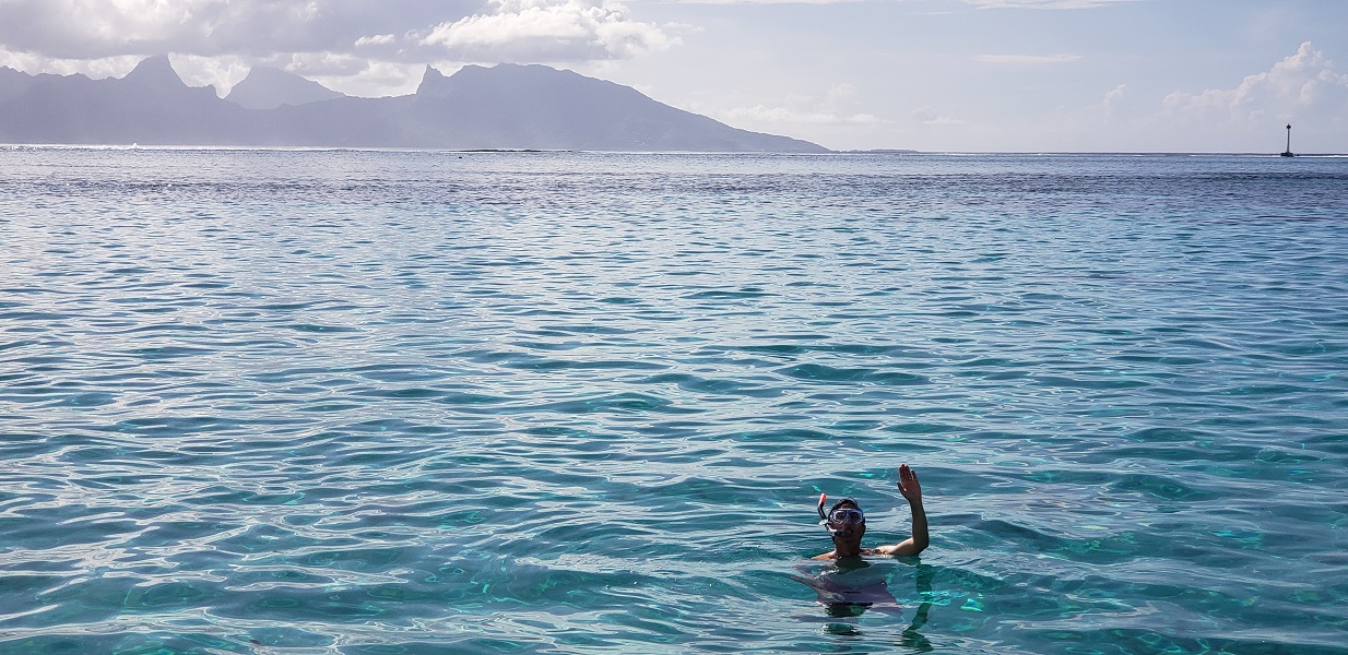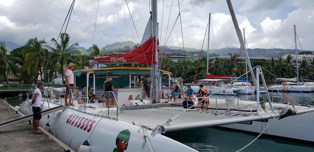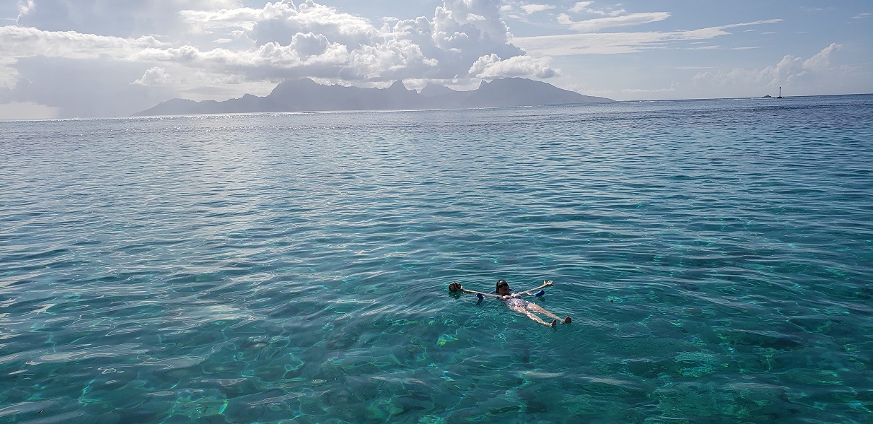 Over the past two weeks, we have had many amazing moments where we’ve simply stared at each other and exclaimed, “Look where we are!” Skimming through crystal-clear blue waters on a catamaran in Tahiti has been one of the best.