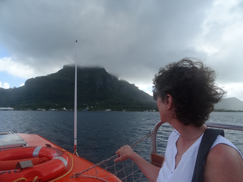 I felt scarred by Tahiti and was worried about Bora Bora. I needn’t have been. Once again we woke to a mountain in the sea – a single tall peak that spent the day with its head buried the clouds.