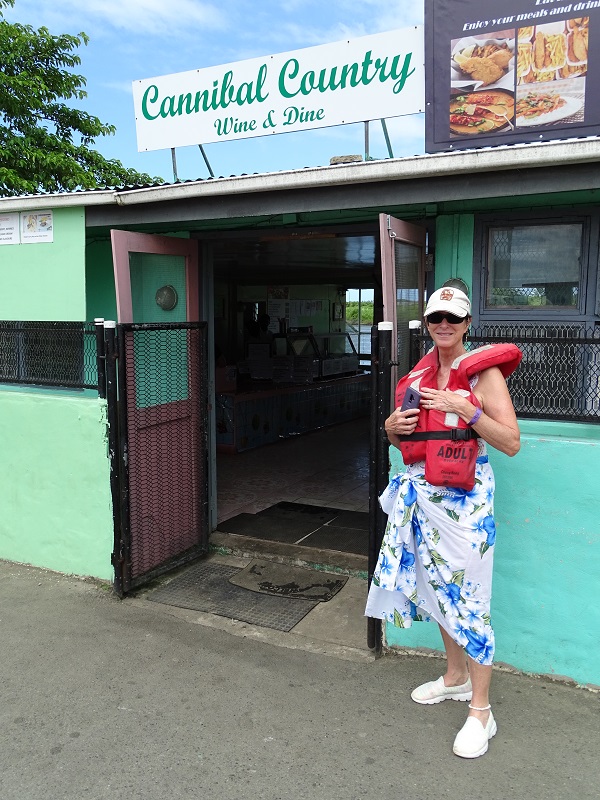 Right on time at 8:30, we left the ship and headed by bus to the staging area for the longboats. It was an hour drive, but the on-board guide – Tony, a local man – was simply amazing. He explained how once upon a time Fiji practiced cannibalism, and the King could have as many wives as he wanted. That all changed after the second wave of missionaries came in and wisely realized that they only had to win over the King and all others would follow. (The first missionaries did not fare so well, and – as Tony said – “ended up in the pot.”)