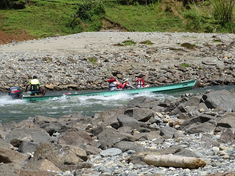 The same source that told me about the hp also told me that there were larger rapids. The guides unload everyone so they can get the boats through safely. He also said that their guide allowed them to stay, so I knew it could be done. As we approached the beach we started to ask – well okay, beg – to be taken through. Initially he said “No,” but then said “Okay, the men must get out, but the women can stay.” Whoo hoo!