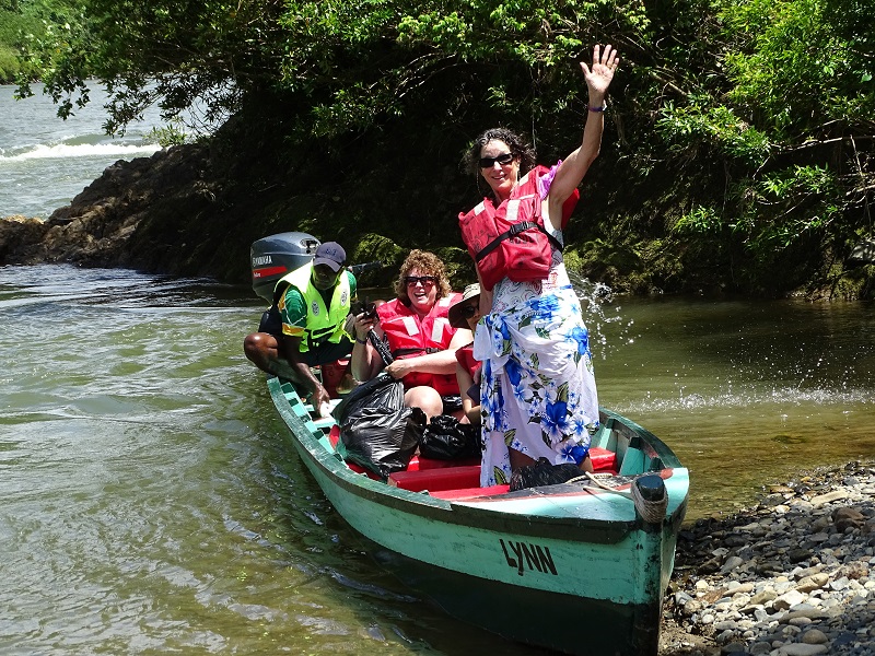 When we arrived to the place we would leave from, next door there was a restaurant: “Cannibal Country.” Hmmm. I was more interested in all the specialty bread shops that seemed to be on every corner. But no time to get a snack; we had to change into our suits. (I wore mine there, so I just slipped off my shorts.) There were about 30 women trying to change in one very small restroom that only had two stalls. It was a bit of a comic mess, but soon everyone was changed and had their lifejackets on.
