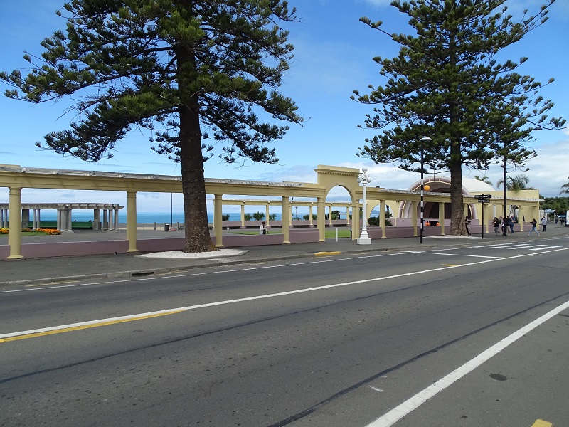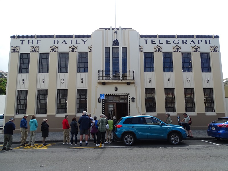Last evening, Gail unwittingly consumed Phenylephrine with alcohol. This morning, she was still so loopy and dizzy that she decided to curtail her activities for our day in Napier, New Zealand. We were originally scheduled for a 4.5 hour “Cape Kidnappers & Gannet Safari” excursion. Instead, Russell turned in our tickets and set out on his own with the three-hour “Art Deco Highlights of Napier” excursion.