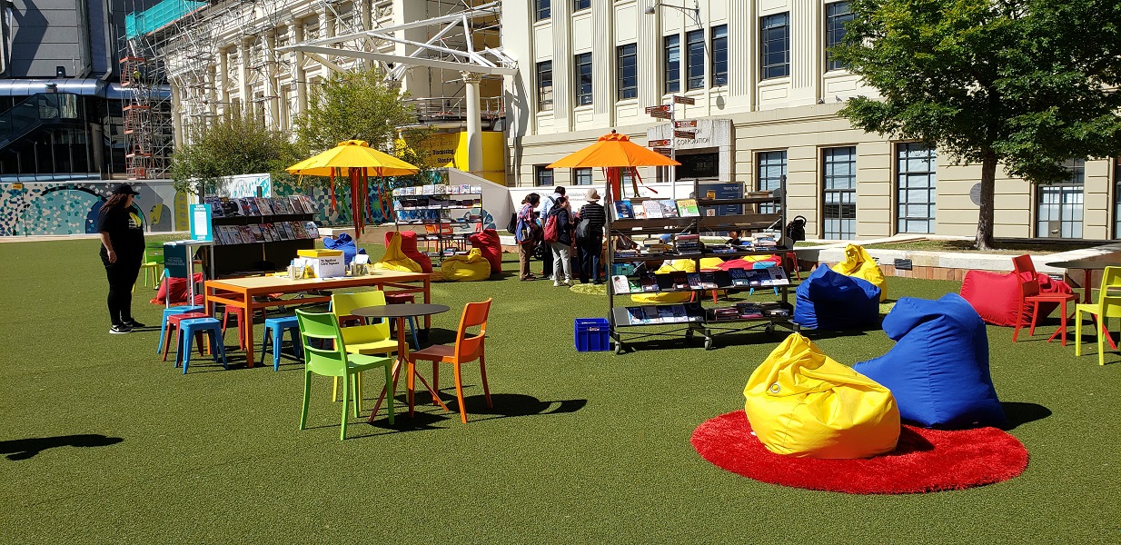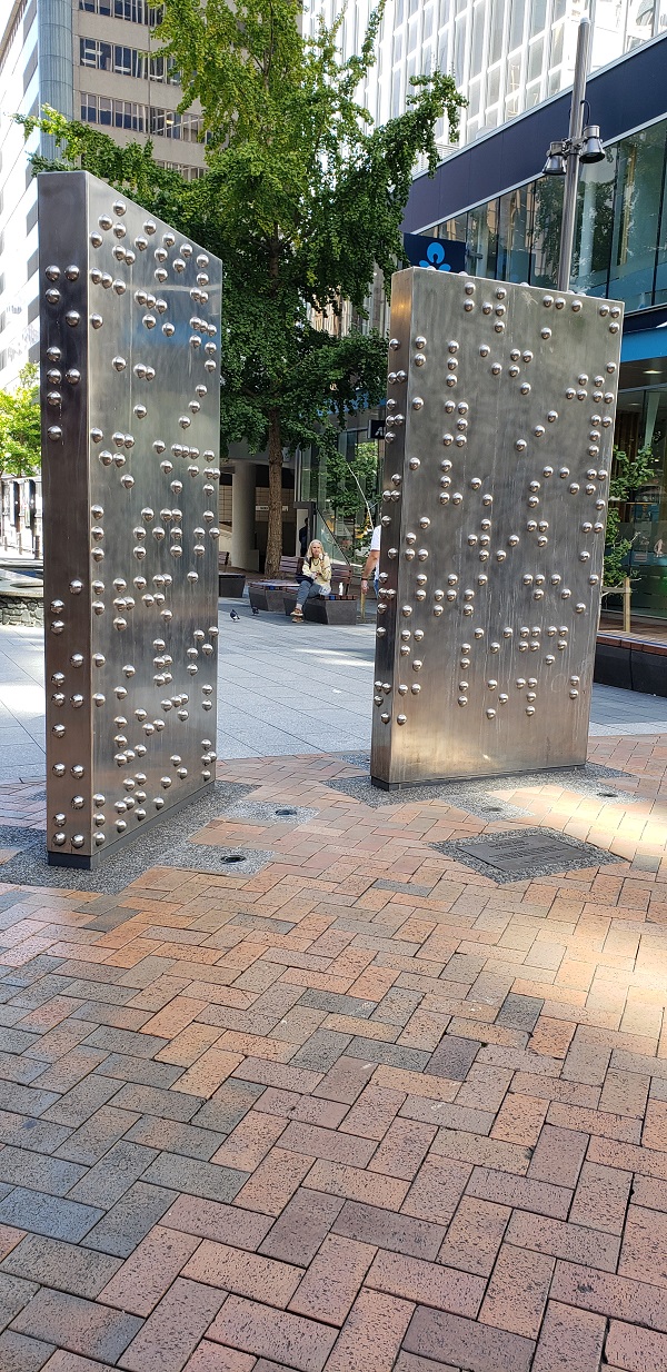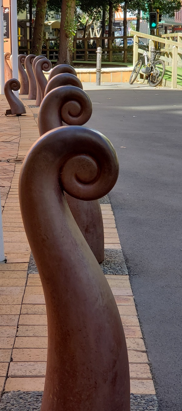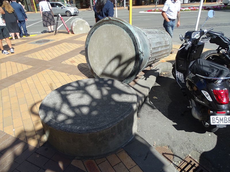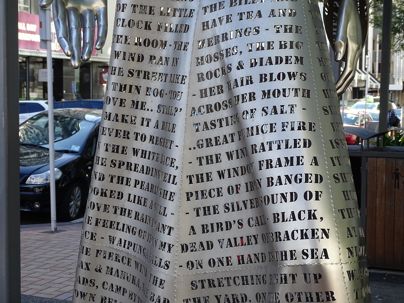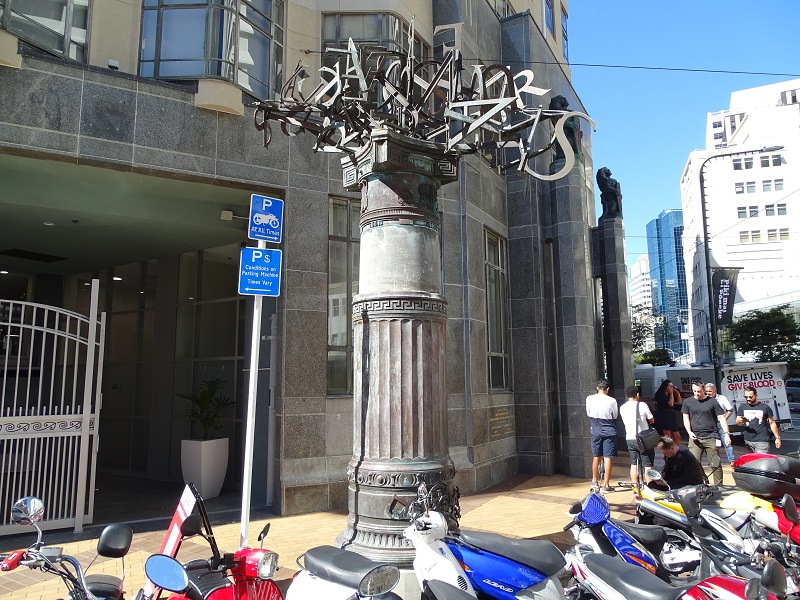 And, oh my, could they. The man behind the counter was Hayden, a Māori man, who had – at hand – copies of the story of the piece. The sculpture is called “Ruaumoko,” the Māori God of Earthquakes. According to the story, “The public is left to ponder the creative potential of language and also the way history has used it for both good and bad ends.”