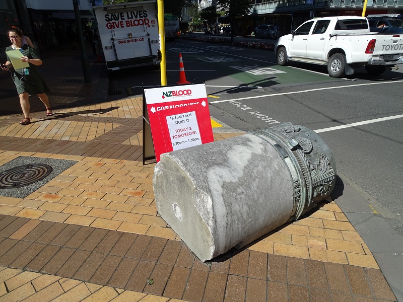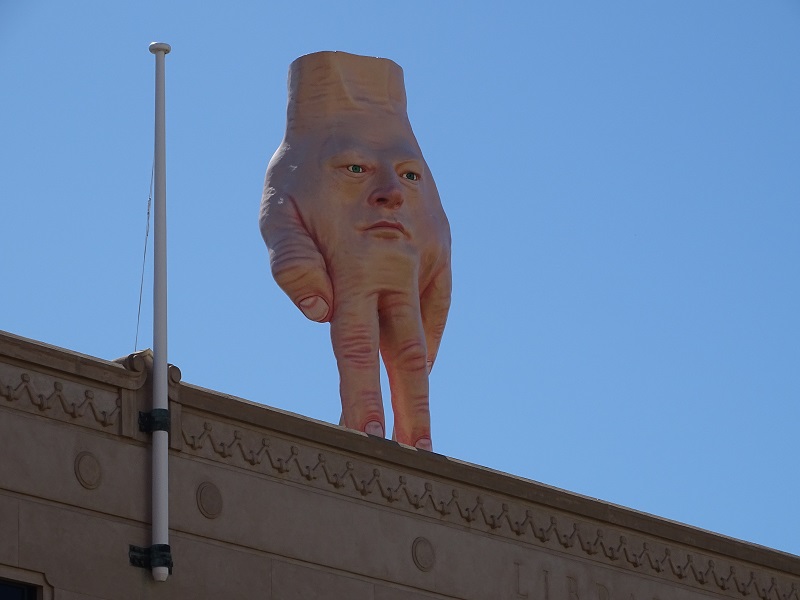 I am so glad we went out. I love public city art. I take pictures of every piece I can find and look for the signs. The first piece we spotted was a broken column that had “broken and fallen” across the sidewalk. There was no sign, so we went inside the building to see if they could tell us more.