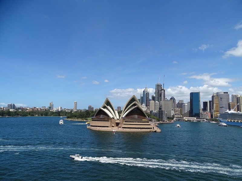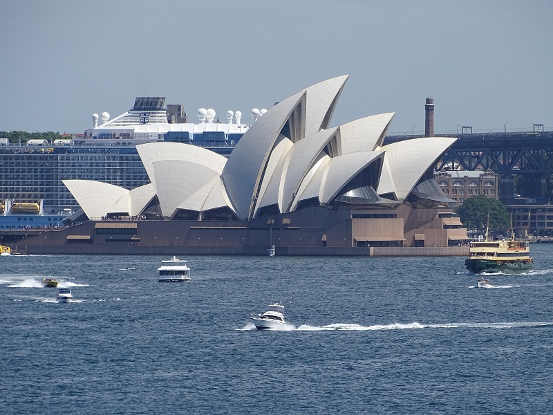It is said that Sydney, Australia, is one of the most beautiful ports in the world to sail into. The last time we were here was almost 20 years ago, and that arrival was by airplane. So we joined the other passengers on deck 12 as the Seven Seas Mariner sailed into Sydney Harbor. Sydney has had an awful summer this year, with the sky blackened by numerous forest fires. Thankfully some recent rains have turned things around. And today, we were treated to a sunny day with bright blue skies.