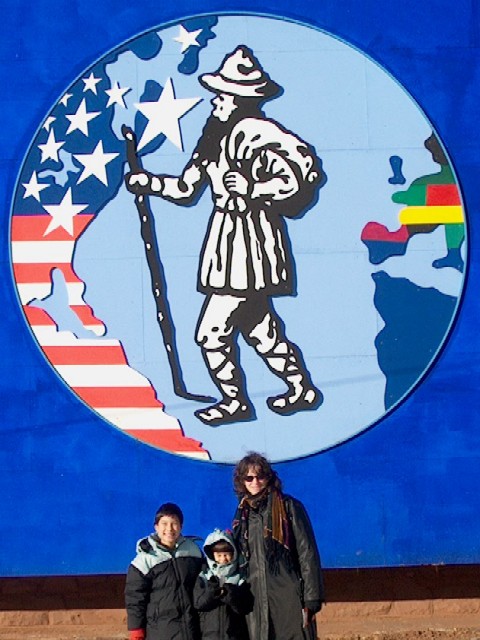 The second hall discussed the long voyage across the ocean, and this was the most interesting for all of us. In a full-sized replica of a ship's hold, we were able to see how cramped and miserable the emigrants were -- entire families were often stuffed into a single bunk below deck in steerage. Cameron especially enjoyed a film (thankfully subtitled in English) that included historical footage of immigrants arriving at Ellis Island. The third hall discussed the new world of the immigrants, where the boys' main memory is of two wax dummies arguing (in English) over a fence that one had erected between their properties.