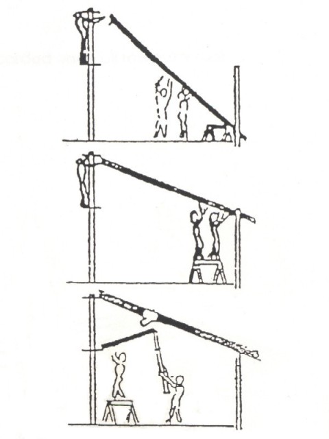 When we got up this morning, Matt and Russell took one more look at Topsider's instructions. Matt proposed an alternate procedure: instead of lifting the corner posts, roof trusses, and diagonal braces up into the air one at a time; then trying to bolt them with our arms above our heads while hanging in the air; why couldn't we just pre-assemble everything on the ground, then use the crane to lift them into place? Russell immediately agreed.